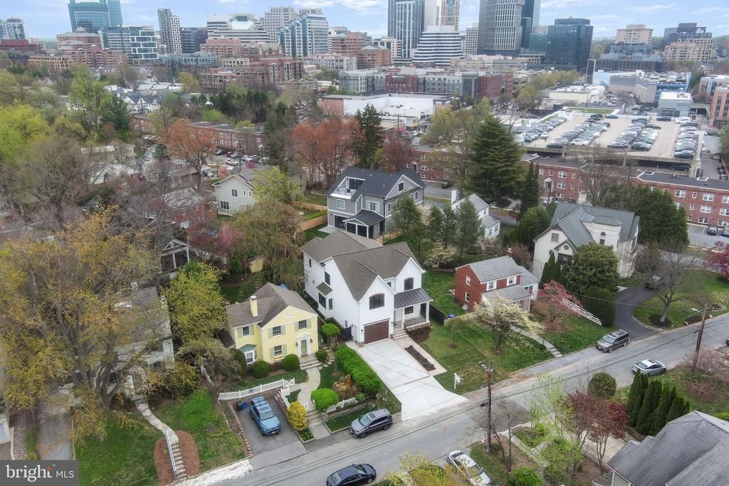 Steps to Bethesda Row. Elevator ready. NEW VIRTUAL TOUR. Brand new custom home by Carter Inc., featuring stylish design, luxury finishes, and convenient access to downtown Bethesda. The home includes a fully constructed elevator shaft currently finished as stacked walk in closets, allowing an easy future installation. The main level offers an open layout with 10 foot ceilings, white oak flooring, solid core doors, and a floor to ceiling honed granite fireplace. The gourmet kitchen includes Thermador appliances, quartz surfaces, a large island, breakfast nook, and walk in pantry. A separate dining room with a built in wine bar and a flexible front room for office/library/living complete the space. Outdoor living features a covered rear porch with ceiling heaters and TV wiring, plus a limestone patio with a built in seating ledge and gas line for grilling. The backyard is fully fenced and professionally landscaped. The upper level includes a spacious primary suite with quartz finishes, a soaking tub, a large walk in shower, and a bright vanity area. Three additional ensuite bedrooms and a dedicated laundry room complete this floor. The finished lower level provides flexible space for a gym, hobbies, work, or play, along with a private bedroom, full bath, and a recreation area with a dry bar and beverage station. A thoughtfully crafted home offering modern comfort, elevated design, and excellent proximity to downtown Bethesda and Chevy Chase.
